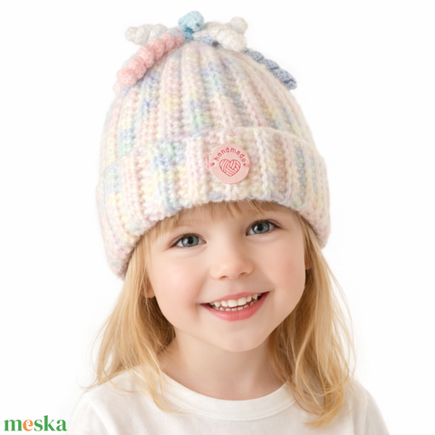 Horgolt Macaron színű spirál pom pom kislány sapka 5726851
