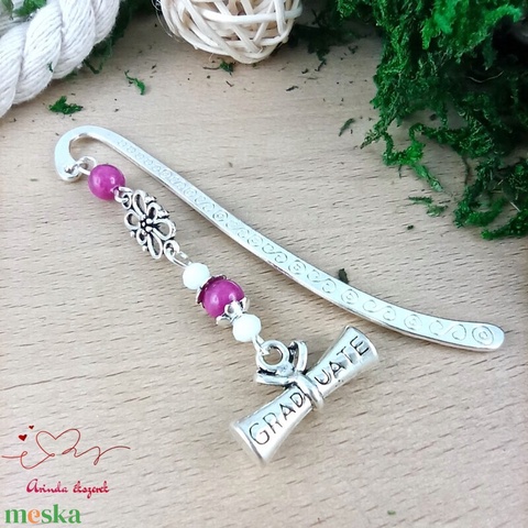 Diplomás könyvjelző pink gyöngyökkel – ballagási és avatási ajándék diplomázóknak