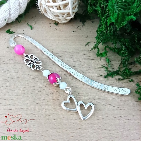 Szív medálos pink könyvjelző – szeretetteljes ajándék