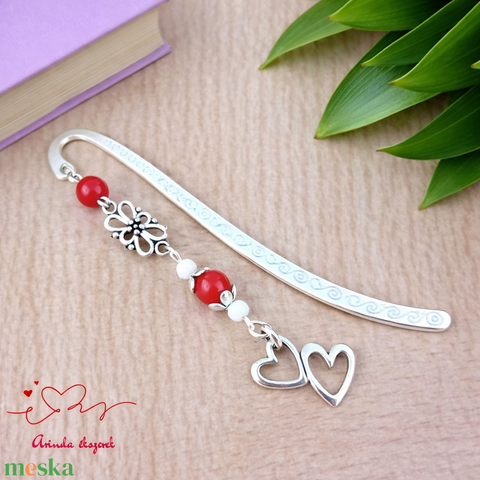 Szív medálos piros könyvjelző – szeretetteljes ajándék