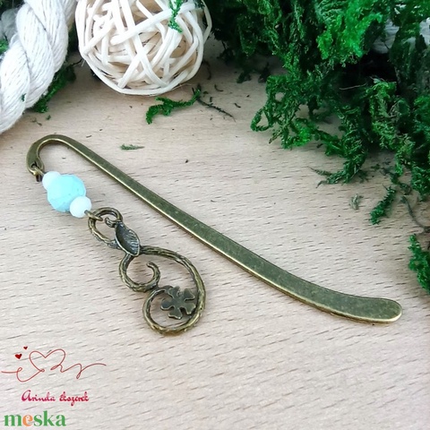 Bronz csüngő virág és lóhere medálos könyvjelző – szerencsehozó ajándék