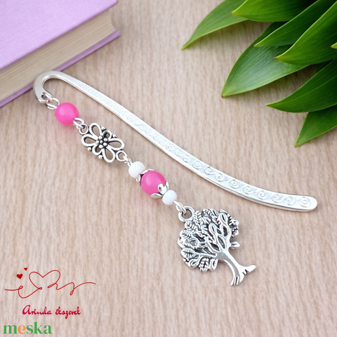Pink achát életfás könyvjelző – pedagógusnapi ajándék