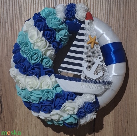 ⛵️🛟kék-fehér tengeri hangulatú vitorláshajós kopogtató🛟⛵️
