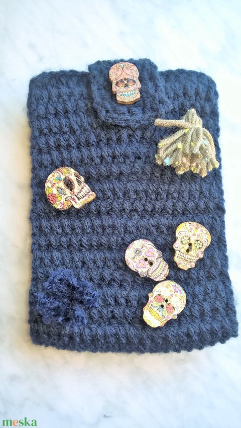 Telefontok Sötét kék mobil telefon tok koponya fejekkel és bojttal, vagy cicával és virágokkal eladó.