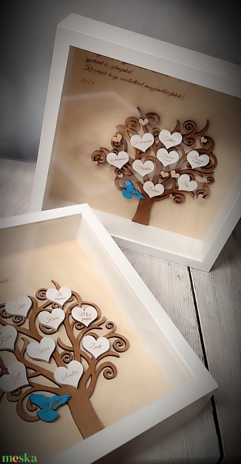 Szülőköszöntő családfa kép esküvőre – egyedi névre szóló ajándék örömszülőknek, nagyszülőknek – keretes családfa dekorác