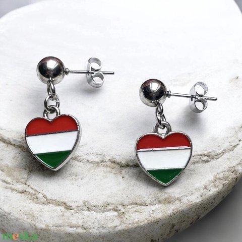Magyar nemzeti színű szív lógó fülbevaló nemesacél alapon 5727041