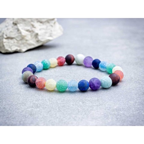 Szivárvány achát ásvány karkötő. Az achát ásvány golyók gumira vannak felfűzve. Amit az achátról érdemes tudnod:Az achát minden színben fellelhető, többnyire szürke, kékesszürke, zöldesszürke, szürkésfehér, barna csíkozással, áttetsző.Lelki gyógyhatása:Az achát lelki gyógyhatásai közül a legkiemelkedőbb a segítségnyújtása félelmeink leküzdéséhez. Ez a mutatós kő reményt és bátorságot ad, segít új életterveink megtalálásában és kialakításában. Talán mindannyian ismerünk olyan férfiakat, akikre túlzott agresszió a jellemző, illetve olyan nőket, akik túlzott gondoskodásukkal megfojtják a körülöttük lévőket. Az ilyen típusú emberek számára az achát a legmegfelelőbb kőtípus, mivel a segít harmonizálni a női / férfi energiákat (jin és jangot), amikor azok kibillennek a megfelelő egyensúlyukból.Testi gyógyhatás:Az achát bélrendszeri problémák fellépésekor kitűnő kiegészítő terápia lehet, szabályozza az emésztést, segíti a bélflóra helyreállítását. Az immunrendszerre gyakorolt pozitív hatása révén ellenállóbbá tesz a fertőzésekkel szemben. Terhesség esetén, segít a hányinger leküzdésében és segíti a baba növekedését.Hozzárendelt mágikus hatás:Az arab kultúra szerint az achát rendelkezik azzal a tulajdonsággal, hogy viselője meg tudja különböztetni az igaz és a hamis barátokat. Szerencsekőként különösen azoknak ajánlott, akik nehezen tudnak ellenállni a szerencsejátékoknak. Sokak szerint vonzza a pénzt és a gazdagságot.Csillagjegyei: Ikrek, RákCsakrái: Gyökércsakra, SzívcsakraNikkelmentes ékszer. Egyedi tervezés alapján készült kézműves ékszer. Amennyiben egyéni kérésed van, vagy nem találod, amit szeretnél, keress engem bátran. Figyelem! Az ásványokat, kristályokat az őskor óta használják a test, a lélek és az érzelmek harmonizálására. Az ókori kultúrákban kifejezetten elterjedtek voltak. Az évezredek alatt számtalan tudás és tapasztalat gyűlt össze róluk. Ásvány ékszereink leírásánál a meghatározó szakirodalom alapján készült összegzések olvashatók. Fontos! Az ásvány ékszerek viselése, az ásványok és kristályok gyógyításban, alternatív terápiaként való használata nem helyettesíti a modern orvostudományt, a gyógyszeres kezelést. Betegség esetén az öngyógyítás helyett kérjük, forduljon szakemberhez!