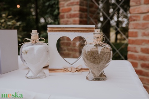 Esküvői homokceremónia emlékdoboz – szív ablakos, névre szóló – rusztikus esküvői dekor, szertartás kellék, örök emlék