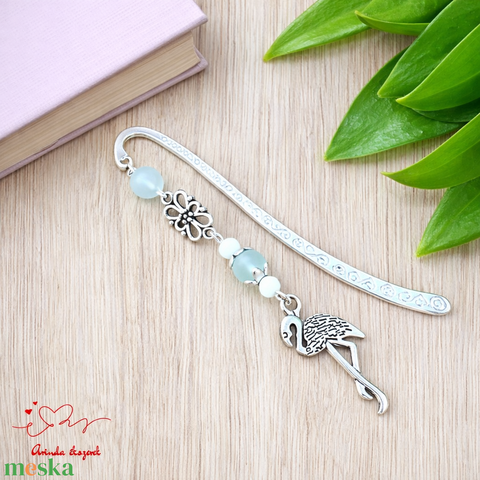 Világoskék flamingós könyvjelző  egyedi, kézműves ajándék olvasóknak - könyv & zene - könyvjelző - Meska.hu