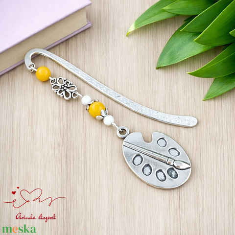 Ez az egyedi, kézzel készült fém könyvjelző az alkotás és a tanítás örömét jeleníti meg egy apró, mégis beszédes ajándék formájában.