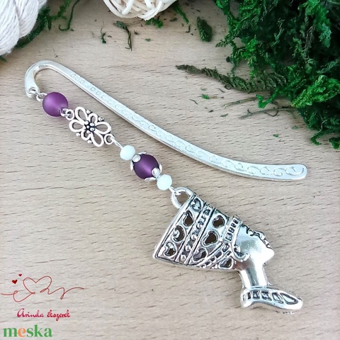 A lila árnyalatú gyöngyök elegáns, nyugodt megjelenést kölcsönöznek a könyvjelzőnek, amely méltó köszönetajándék pedagógusnapra vagy tanévzáróra.