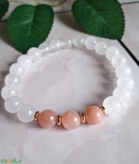 Holdkő és fehér jáde ásvány karkötő – tisztaság, nőiesség
