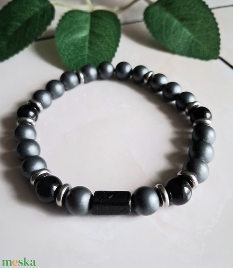 Matt hematit és ónix férfi ásvány karkötő – erő és stabilitás