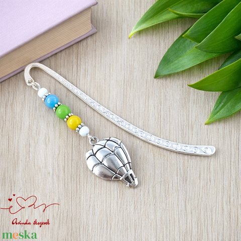 A hőlégballon motívum a felfedezést, a könnyedséget és a bátorságot jelképezi, míg a színes gyöngyök játékos, vidám megjelenést kölcsönöznek a könyvjelzőnek.
