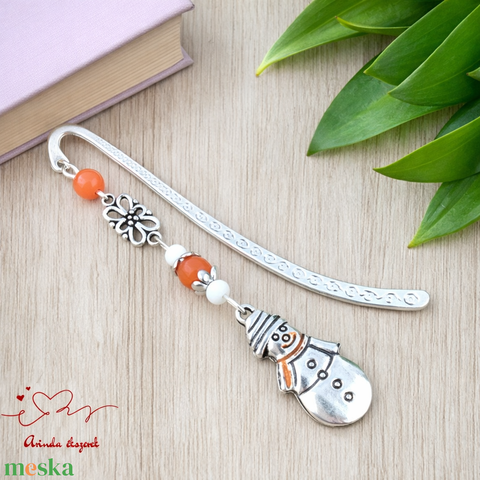 Narancs hóemberes könyvjelző – karácsonyi kézműves ajándék olvasóknak