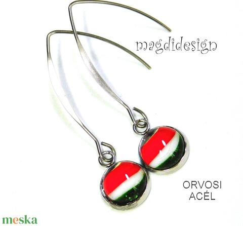 Nemzeti színű üvegékszer lógós fülbevaló-- Kokárda