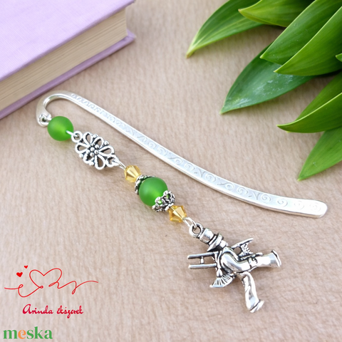 Ez az egyedi, kézzel készült fém könyvjelző a szerencse, az új kezdetek és a pozitív fordulatok jelképe.