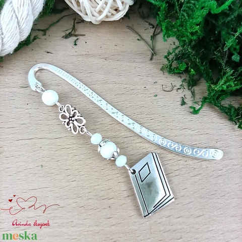 Fehér könyv charmos könyvjelző – pedagógusnapi és évzáró ajándék
