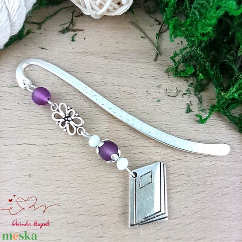 A könyv alakú charm a pedagógus hivatás szimbóluma, míg a lila árnyalatú gyöngyök a bölcsességet, a kreativitást és a belső értékek tiszteletét jelképezik.