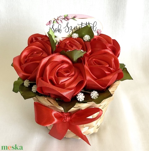 - Anyaga: bambuszkosár, szaténszalag, gyöngy