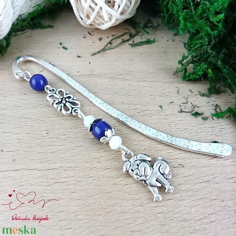Ez az egyedi, kézzel készült fém könyvjelző a kutyák iránti szeretetet és az olvasás nyugalmát mély, kiegyensúlyozott hangulatban jeleníti meg.