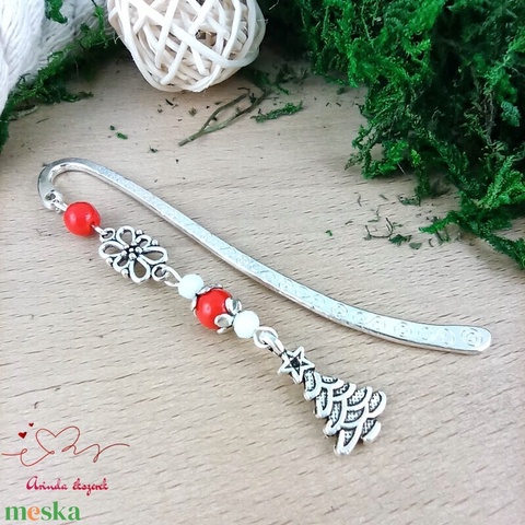 Piros karácsonyfa könyvjelző – ünnepi, kézműves ajándék olvasóknak