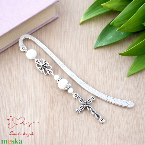 A kereszt charm a hitet, a tisztaságot, az erkölcsi iránymutatást és a szeretetteljes nevelést szimbolizálja, míg a fehér árnyalatú gyöngyök az őszinteséget, a nyitottságot és a belső békét hangsúlyozzák.