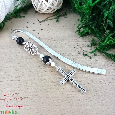 Fekete kereszt könyvjelző – hittan, erkölcstan pedagógusnak – évzáró, pedagógusnapi ajándék