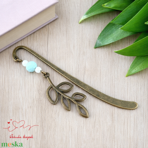 Világoskék leveles ág könyvjelző – természet ihlette, kézműves ajándék olvasóknak