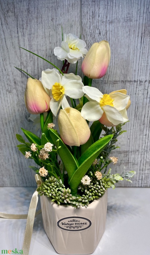 Tulipán és nárcisz kerámiakaspóban