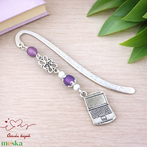 Lila laptop könyvjelző – kézzel készült ajándék tanárnak, pedagógusnak