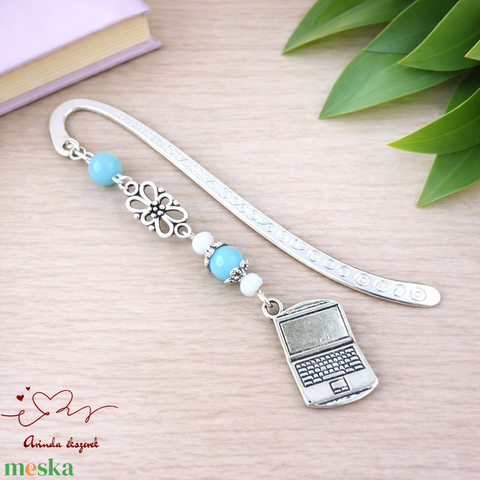 Világoskék laptop könyvjelző – kézzel készült ajándék tanárnak, pedagógusnak
