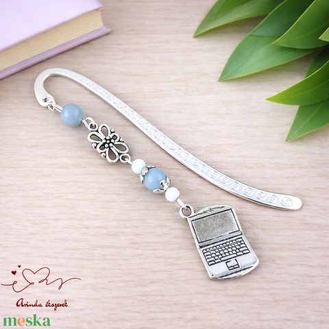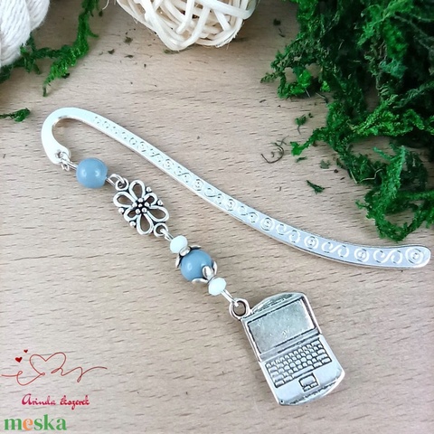 Szürke laptop könyvjelző – kézzel készült ajándék tanárnak, pedagógusnak