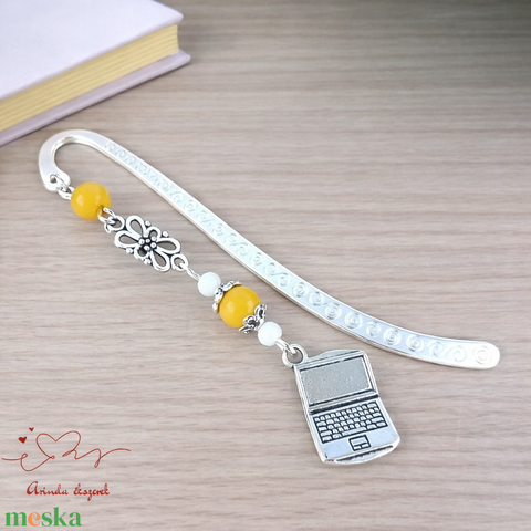 Sárga laptop könyvjelző – kézzel készült ajándék tanárnak, pedagógusnak