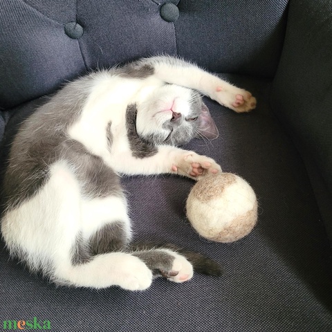 Természetes nemez macskajáték diócsörgővel – kézműves gyapjú labda cicáknak (4–7 cm)