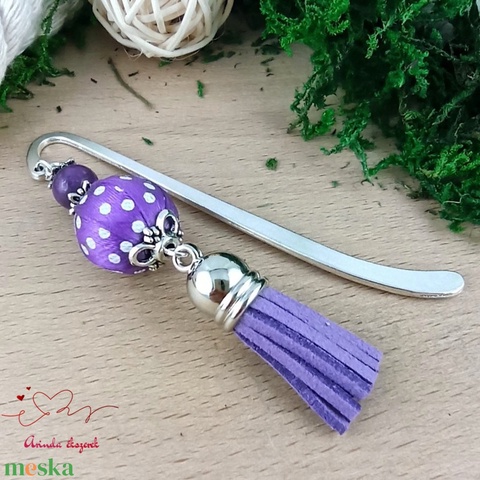 Lila vidám pöttyös bojtos könyvjelző – kedves ajándék pedagógusnak