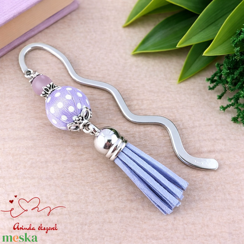 Levendula vidám pöttyös bojtos könyvjelző – kedves ajándék pedagógusnak