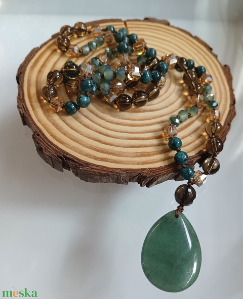 Füstkvarc, aventurin hosszú nyaklánc- kézzel készült ásvány ékszer