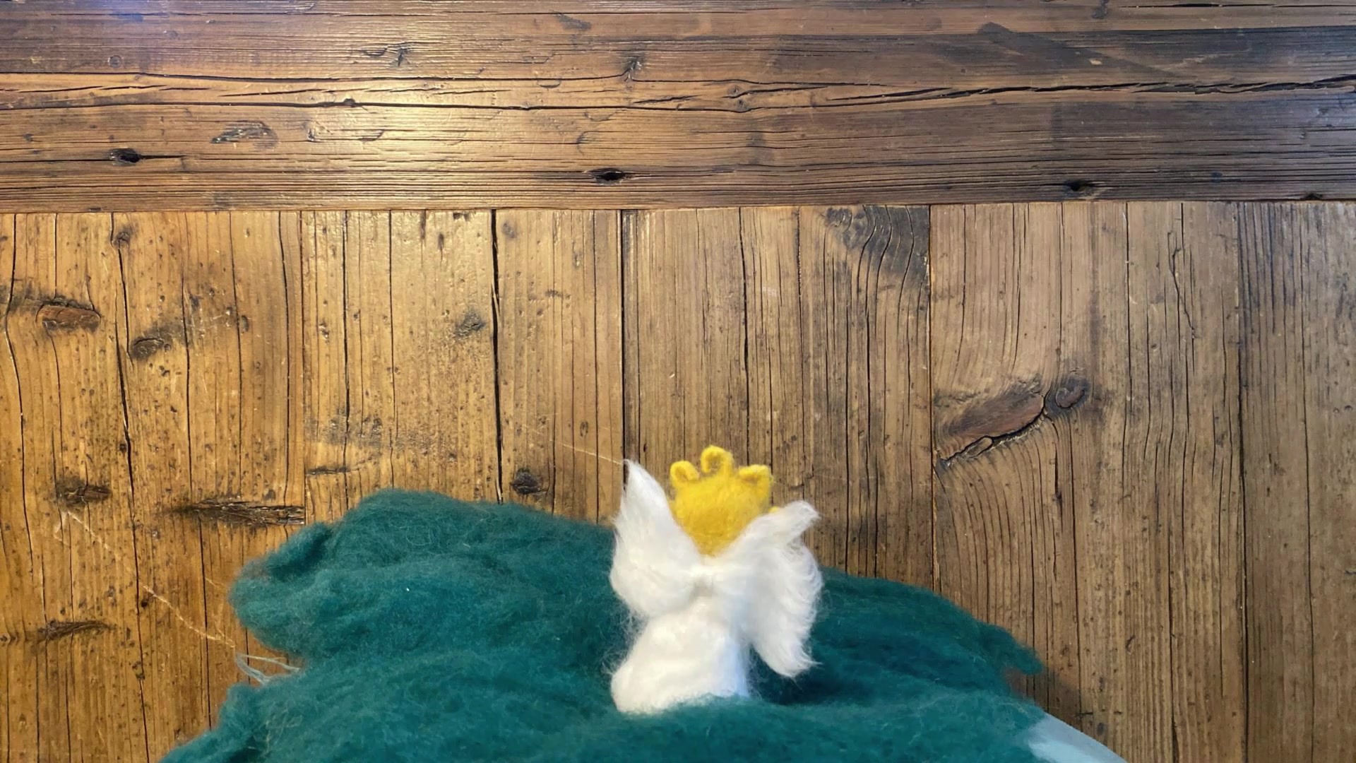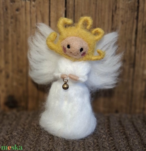 Az angyal tűnemez technikával, kézzel készült, természetes gyapjúból.
