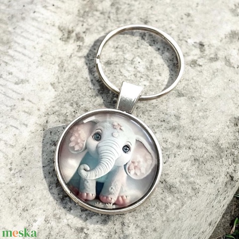 Üveglencsés fém kulcstartó - Elefánt baba baby
