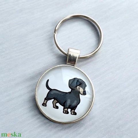 Üveglencsés fém kulcstartó - Tacskó