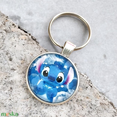 Üveglencsés fém kulcstartó - Stitch