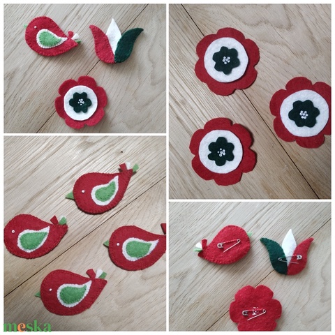 Filc gyapjúfilc kokárda, nemzetiszínű madárka, virág, tulipán, huszárfiú, lány, szív