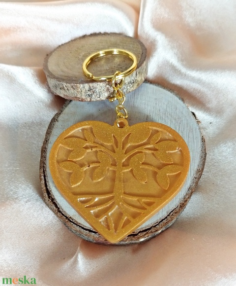 Arany színben fa diszítéssel hölgyeknek való kulcstartó. Kiváló ajándék Valentin napra, nő napra és anyák napjára is. Fényben diszkréten csillog.Praktikus tulajdonsága, hogy mérete miatt a nagy női táskában is könnyen megtalálható a kulcscsomó. Könnyű, nem törékeny. Mérete 5 * 6 cm.