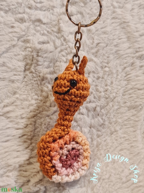 Kézműves horgolt kabalafigurás kulcstartó - Mini csiga (Cinnamon)