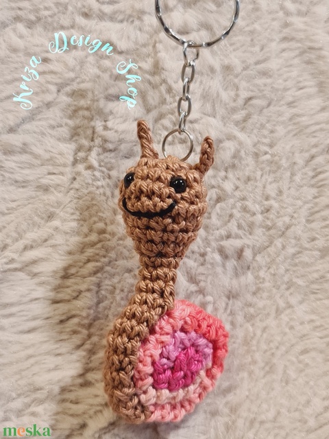 Kézműves horgolt kabalafigurás kulcstartó - Mini csiga (Paula)
