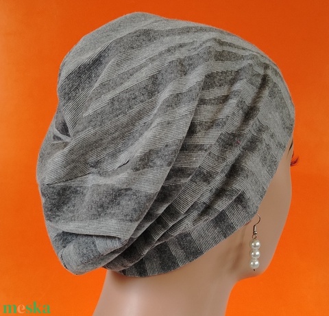 Sapka - Kemoterápiás sapka - világosszürke-sötétszürke csíkos -, paróka helyett - daganatos kezelések idejére is