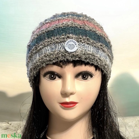 Kézzel kötött csíkos mintás lányka tini női sapka egyedi darab 5728000