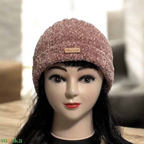 Kézzel kötött finom zsenília fonalból készült lányka tini női sapka egyedi darab 5728002