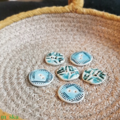 KERÁMIA GOMBOK - kézzel készült türkizkék mintás, 6db / csomag